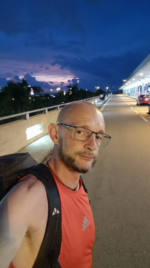 9:31 Uhr. Flughafen. Rucksack auf dem Rücken, Sonnenuntergang hinter mir, ein letztes Selfie. Das Licht ist lila, der Himmel ist groß, und ich sehe aus wie jemand, dem das alles gut getan hat. Hat es auch.
