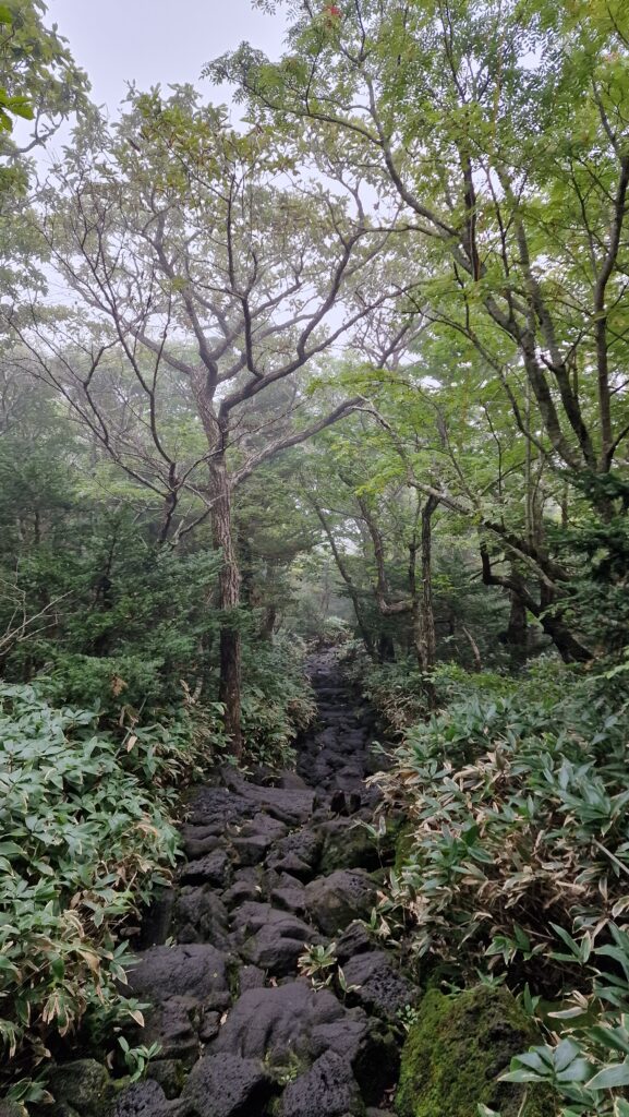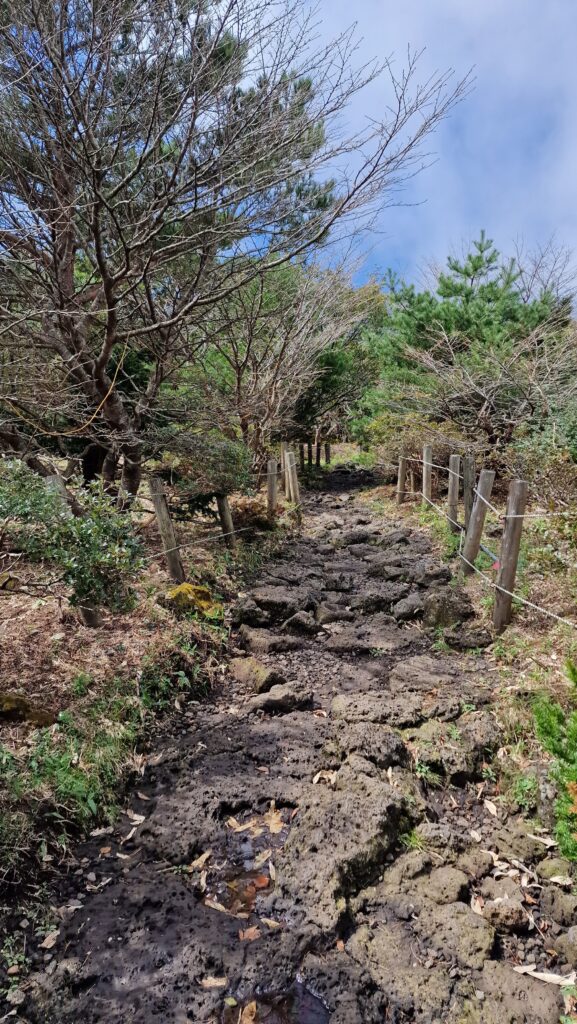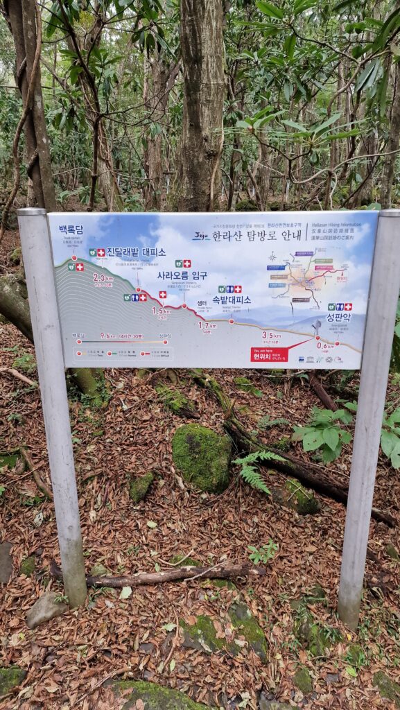 Der Seongpanak-Trail ist mit 9,6 km pro Richtung die längste, aber technisch gemäßigste Aufstiegsroute. Der Weg führt durch dichten Bergregenwaldgürtel aus Buchenwäldern und subtropischen Pflanzen über offene Lavafelsplatten bis zum Kratersee Baengnoktam (백록담) auf dem Gipfel. Gegen Ende des Aufstiegs weitet sich das Panorama auf die gesamte Insel Jeju – ein u unvergeßlicher Anblick bei klarem Himmel.