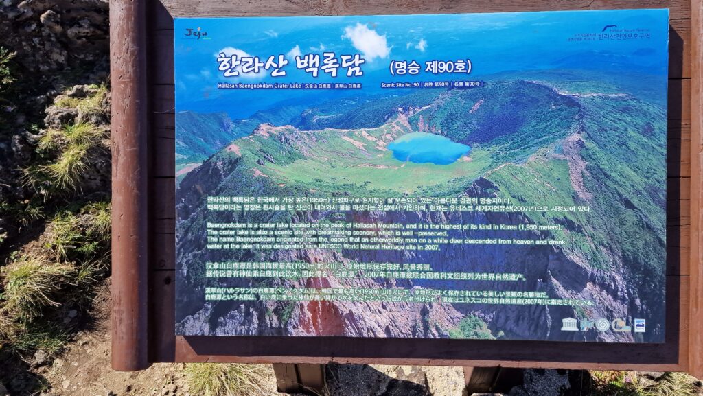 Der Hallasan (한라산, 1.950 m) ist der höchste Berg Südkoreas und überragt als schlafender Schildvulkan die Insel Jeju. Der Gipfel gehört zum Hallasan-Nationalpark, einem UNESCO-Weltnaturerbe, und ist auf mehreren Routen erreichbar – die bekannteste ist der Seongpanak-Trail.