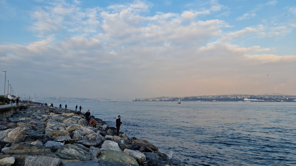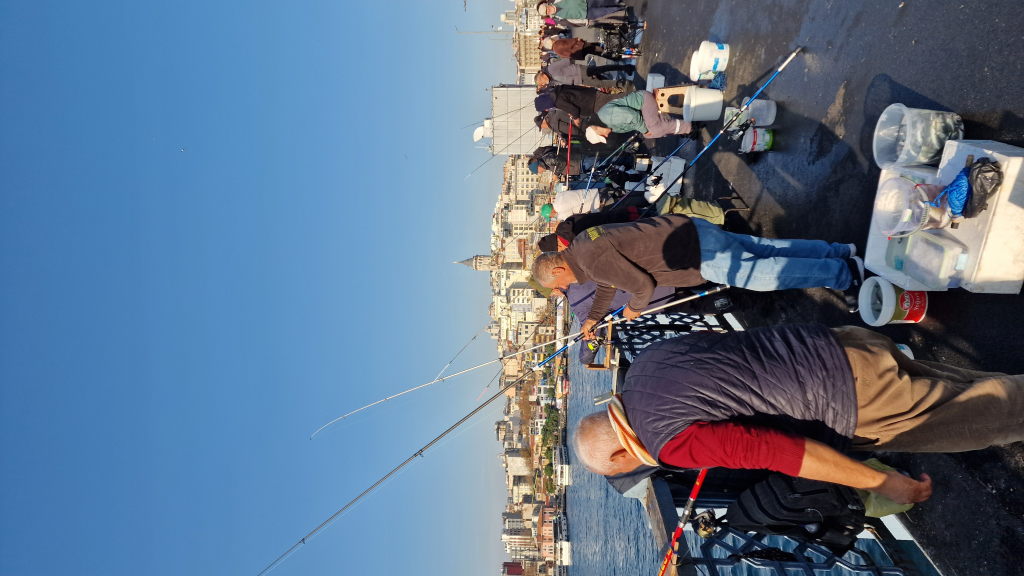 Galatabrücke morgens: Dutzende Fischer, Ruten über dem Wasser, Galata-Turm im Hintergrund. Das ist eine der konstantesten Szenen Istanbuls — hier wird gefischt, seit es die Brücke gibt. Touristen, Einheimische, alle schauen ins Wasser.