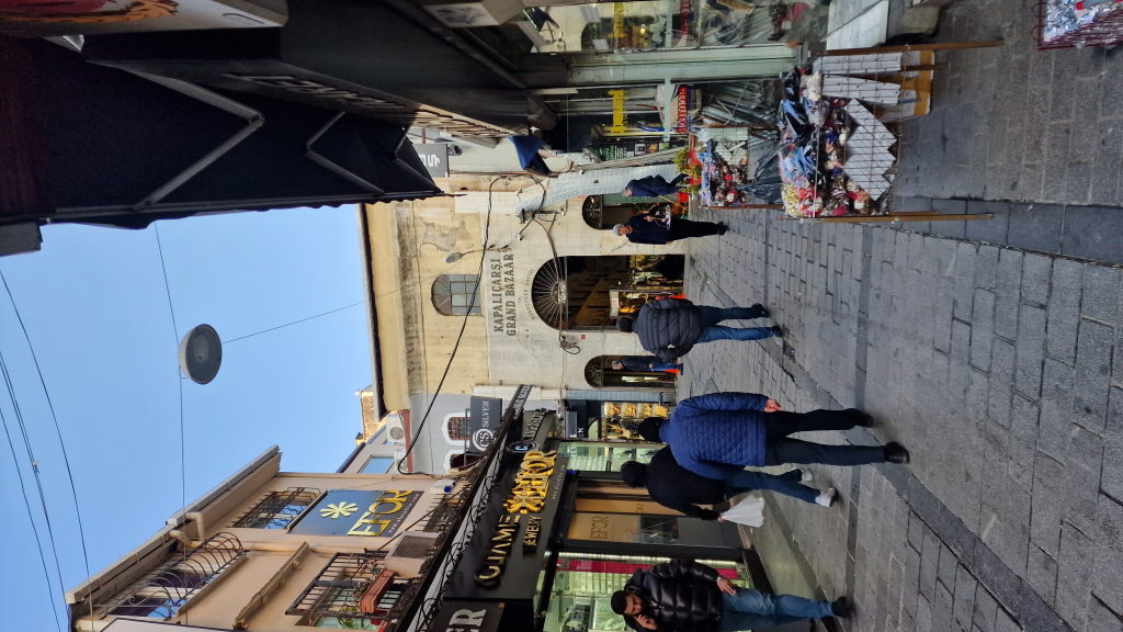 Kapalıçarşı — der Große Basar. Über 4.000 Läden, seit dem 15. Jahrhundert. Man geht rein, verliert sofort die Orientierung, und irgendwann kauft man irgendetwas, das man nicht gebraucht hat. Klassisch. Das Eingangstor sieht aus wie immer: unscheinbar von außen, dahinter eine eigene Stadt.