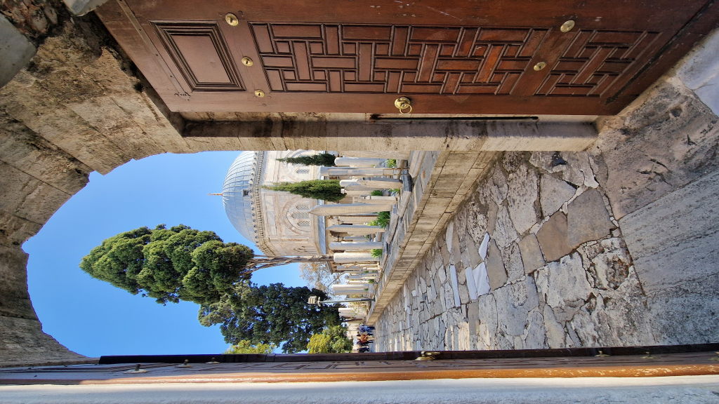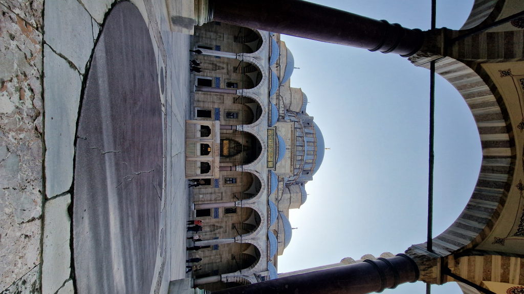 Die Süleymaniye-Moschee ist weniger bekannt als die Blaue Moschee — und genau deshalb besser. Weniger Touristen, mehr Stille, und dieser Innenhof durch den Bogengang fotografiert: ein Bild, das man nicht vergisst. Dazu der Blick von der Terrasse über Istanbul und den Bosporus — einer der besten Aussichtspunkte der Stadt, kaum einer weiß davon.
