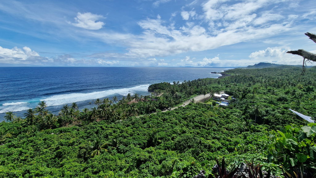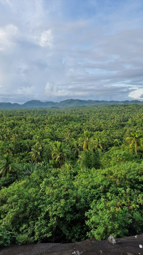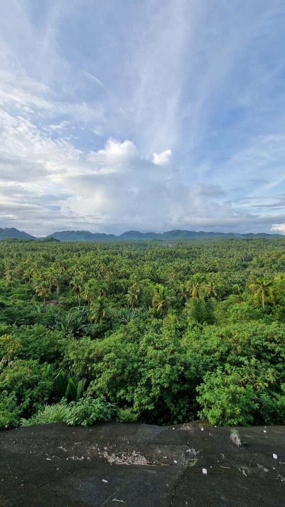 Weiter Richtung Norden, nach Burgos. Dort: der Secret Mountain View — ein selbstgebauter Aussichtspunkt auf einem Felsen, der über den Dschungel hinausragt. Keine große Infrastruktur, kein Eintritt, nur eine Holztreppe und oben die Aussicht: Ein endloses grünes Meer aus Kokospalmen, dahinter die Berge, und irgendwo dazwischen der Pazifik.